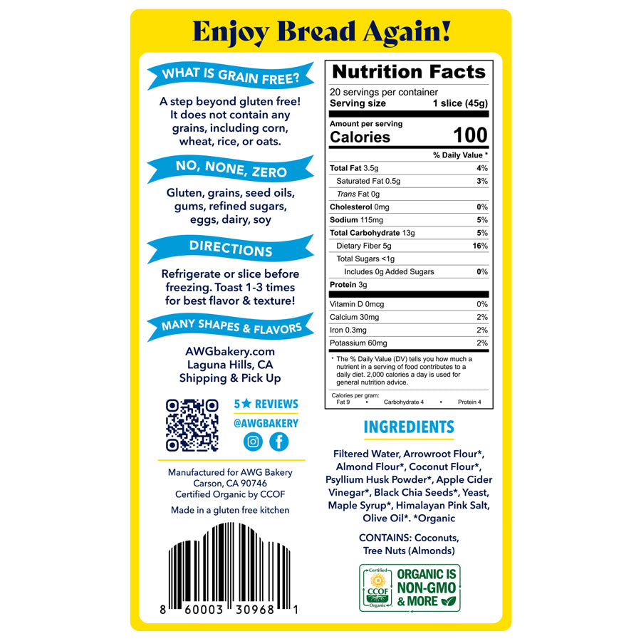 This is the best grain free bread I’ve come across. I love to buy several loaves then slice and freeze. Toasts up really well.